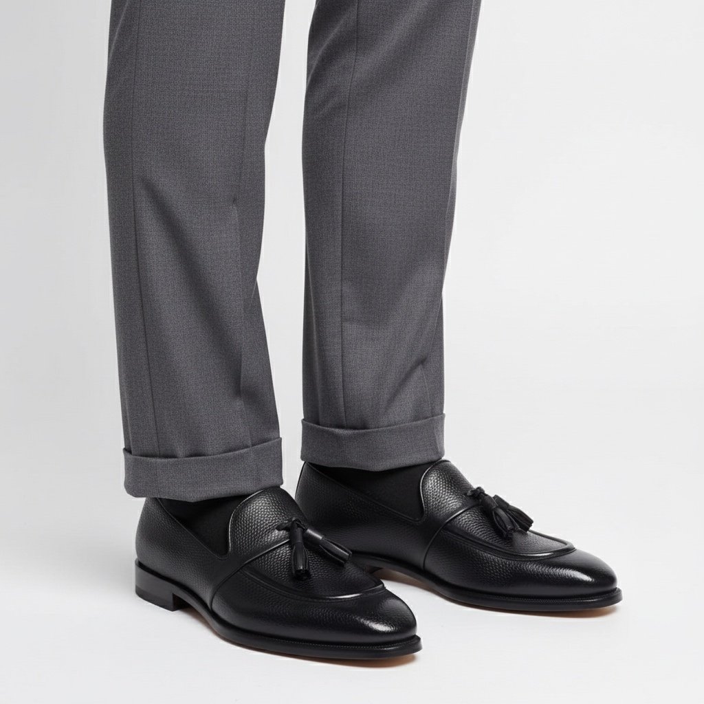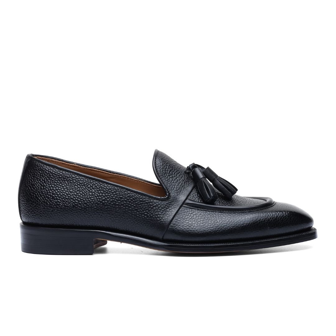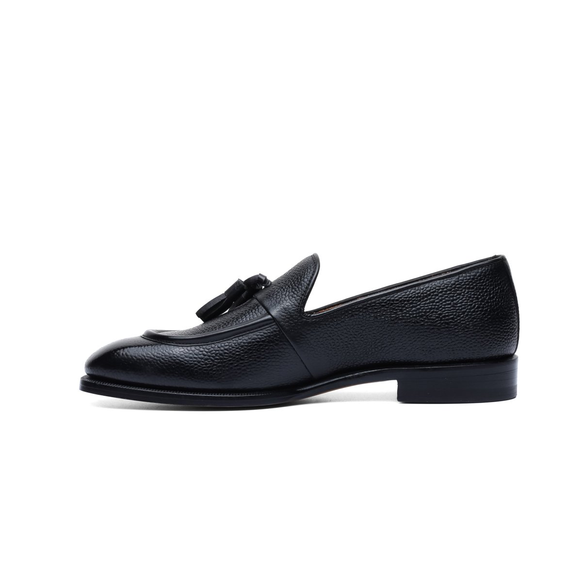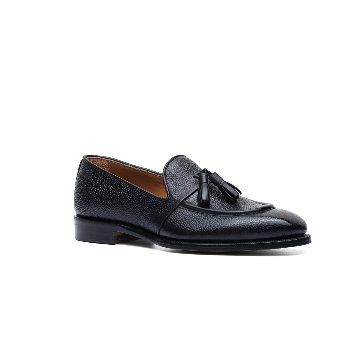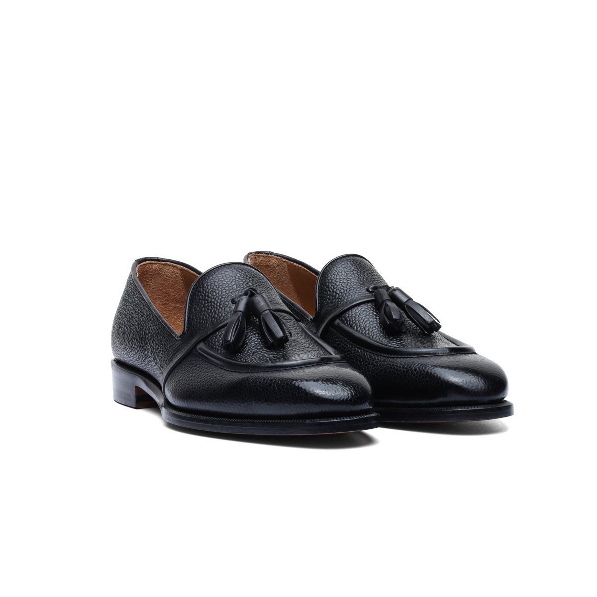 Calzature artigianali Made in Italy modello Tassel Loafer, conosciute anche come “Mocassino con Nappine”, rese particolari dalla pelle con effetto martellato.