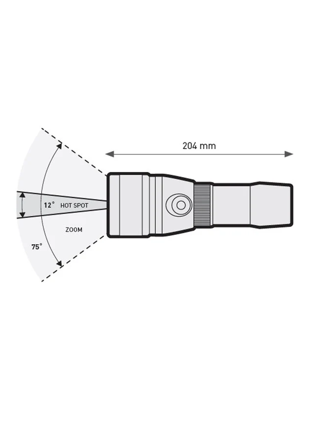 - Una “sicura elettronica” impedisce l’accensione involontaria – basta un doppio clic sull’interruttore per accendere la torcia