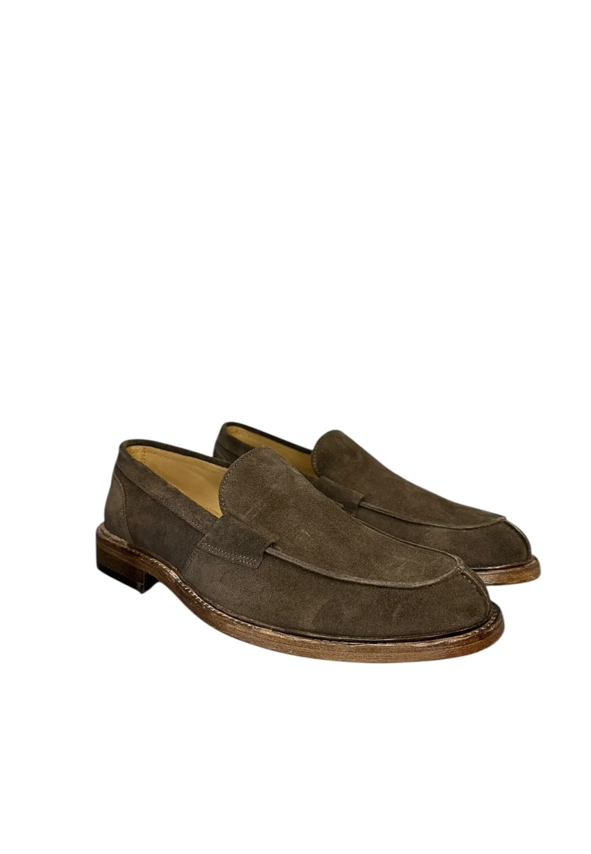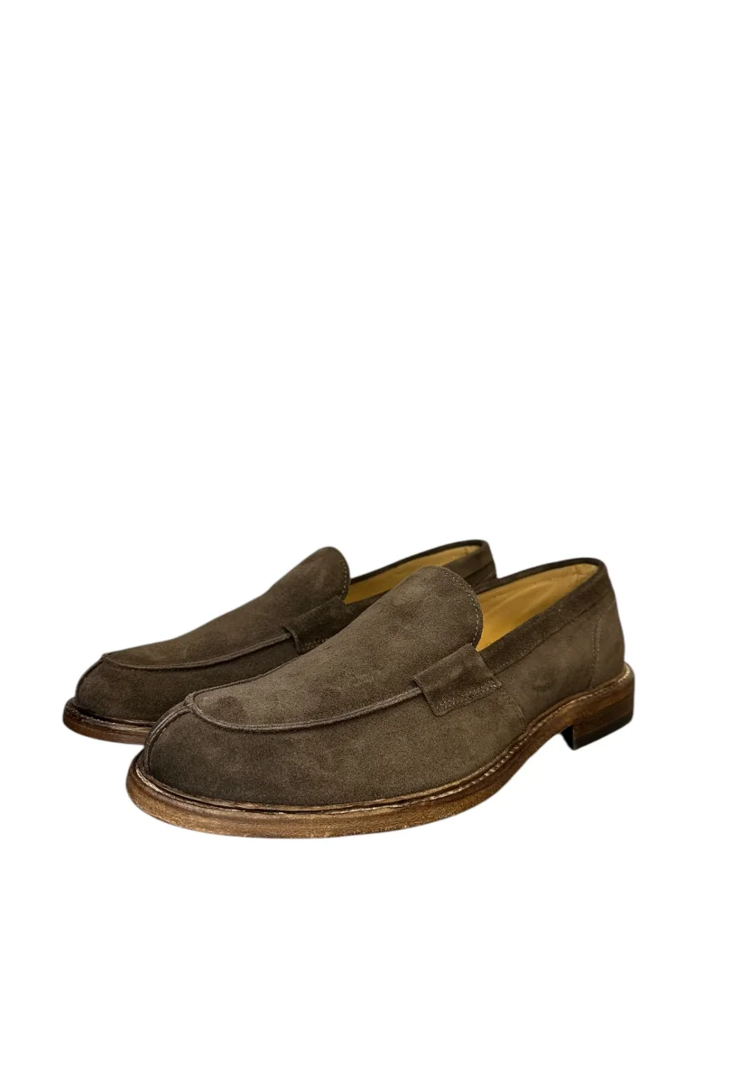 Mocassino in camoscio liscio con fondo gomma