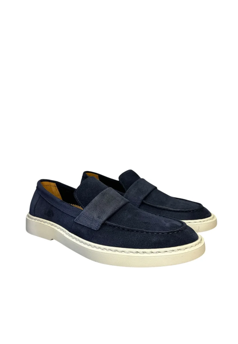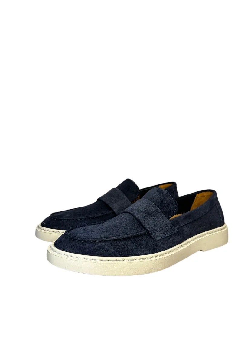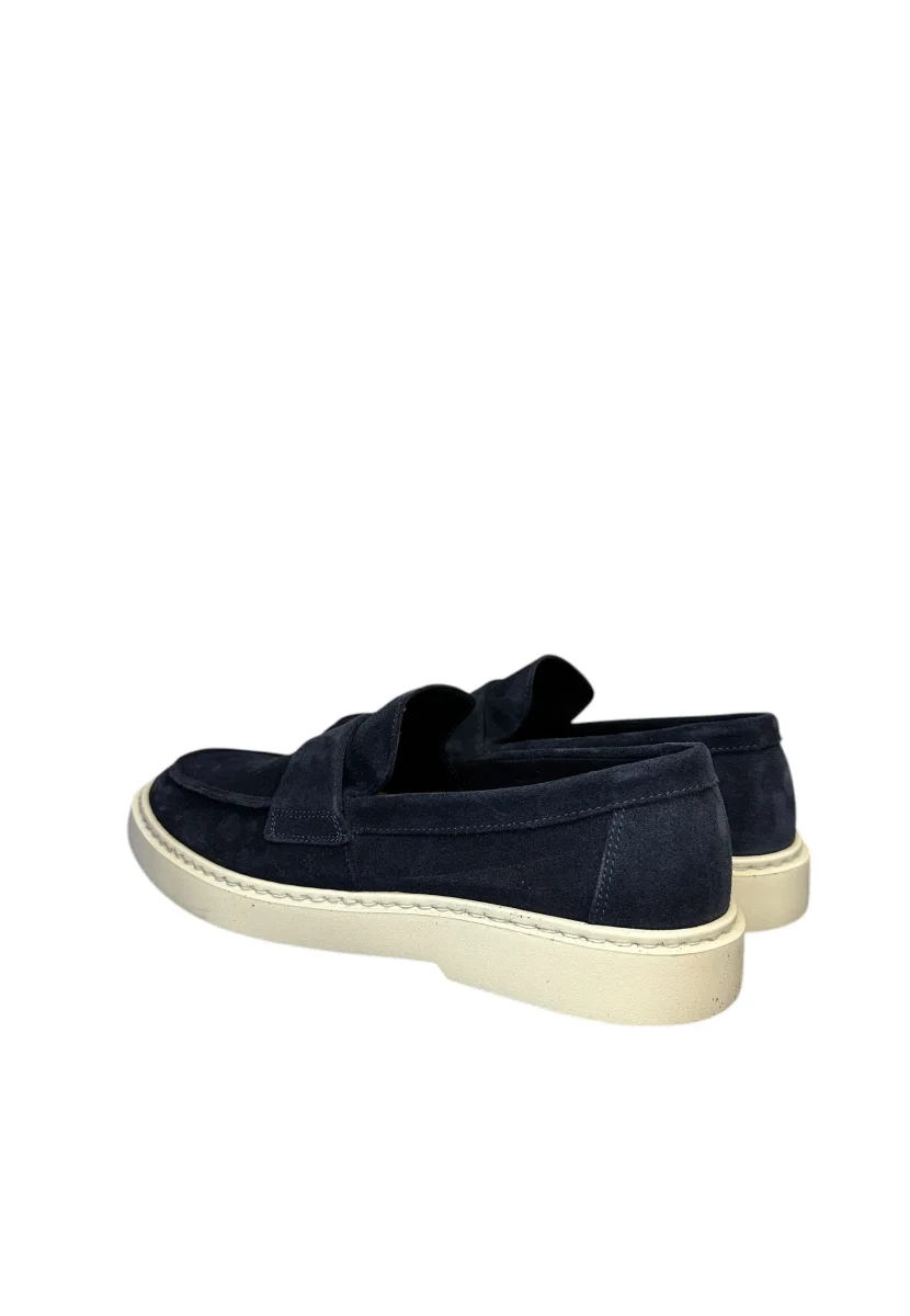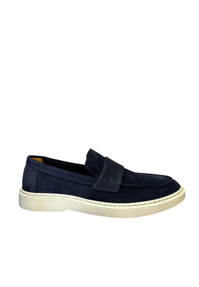 Mocassino in camoscio sfoderato, blu con fondo extra light