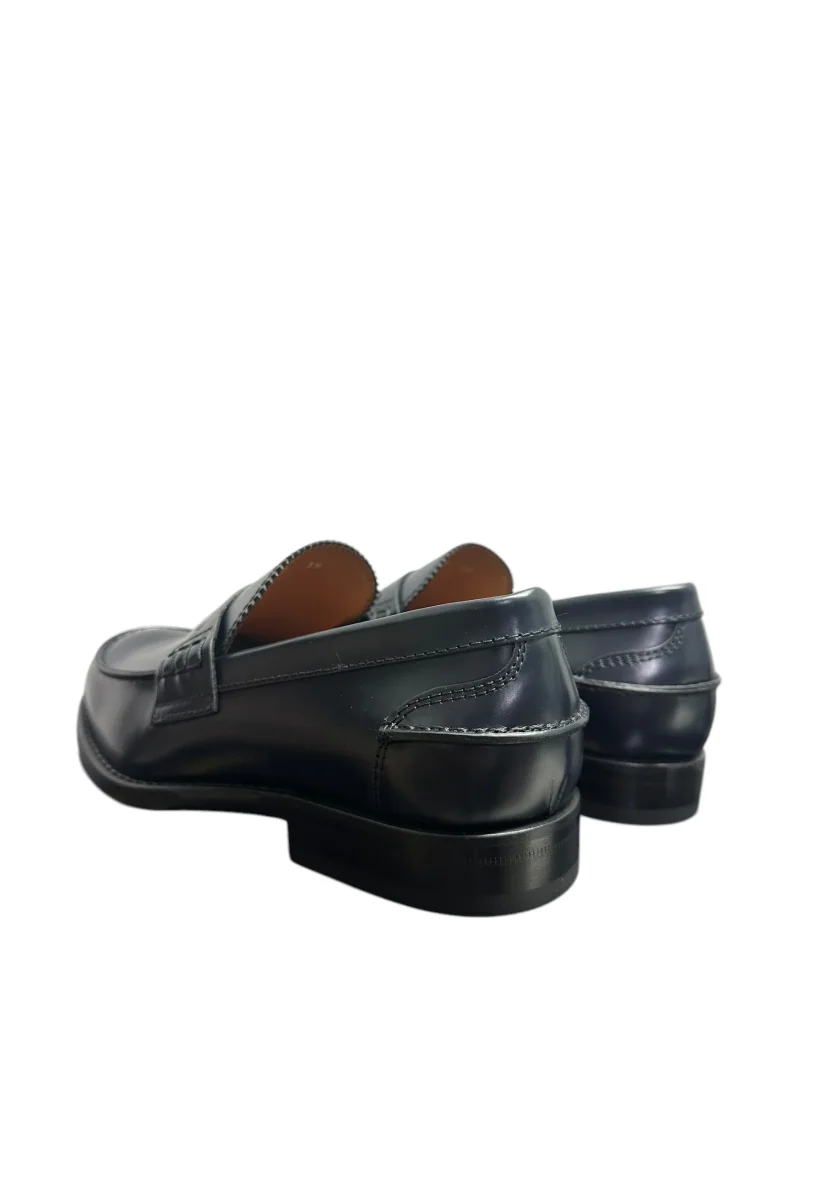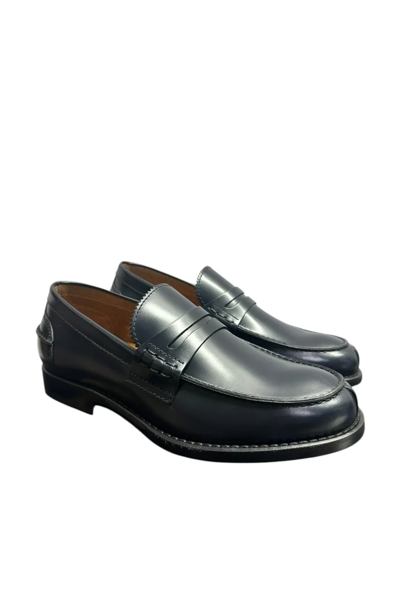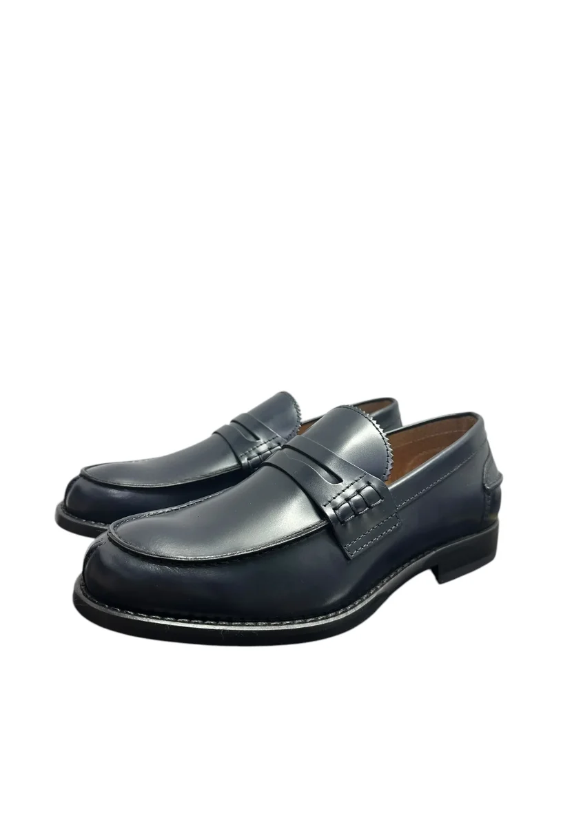 College stile inglese in vitello spazzolato blu consigliato per un outfit classico da utilizzare anche nelle occasioni importanti DATI TECNICI : College sfoderato lavorazione ago, tomaia in vitello spazzolato semilucido blu, fondo in gomma leggera e sottopiede confort estraibile