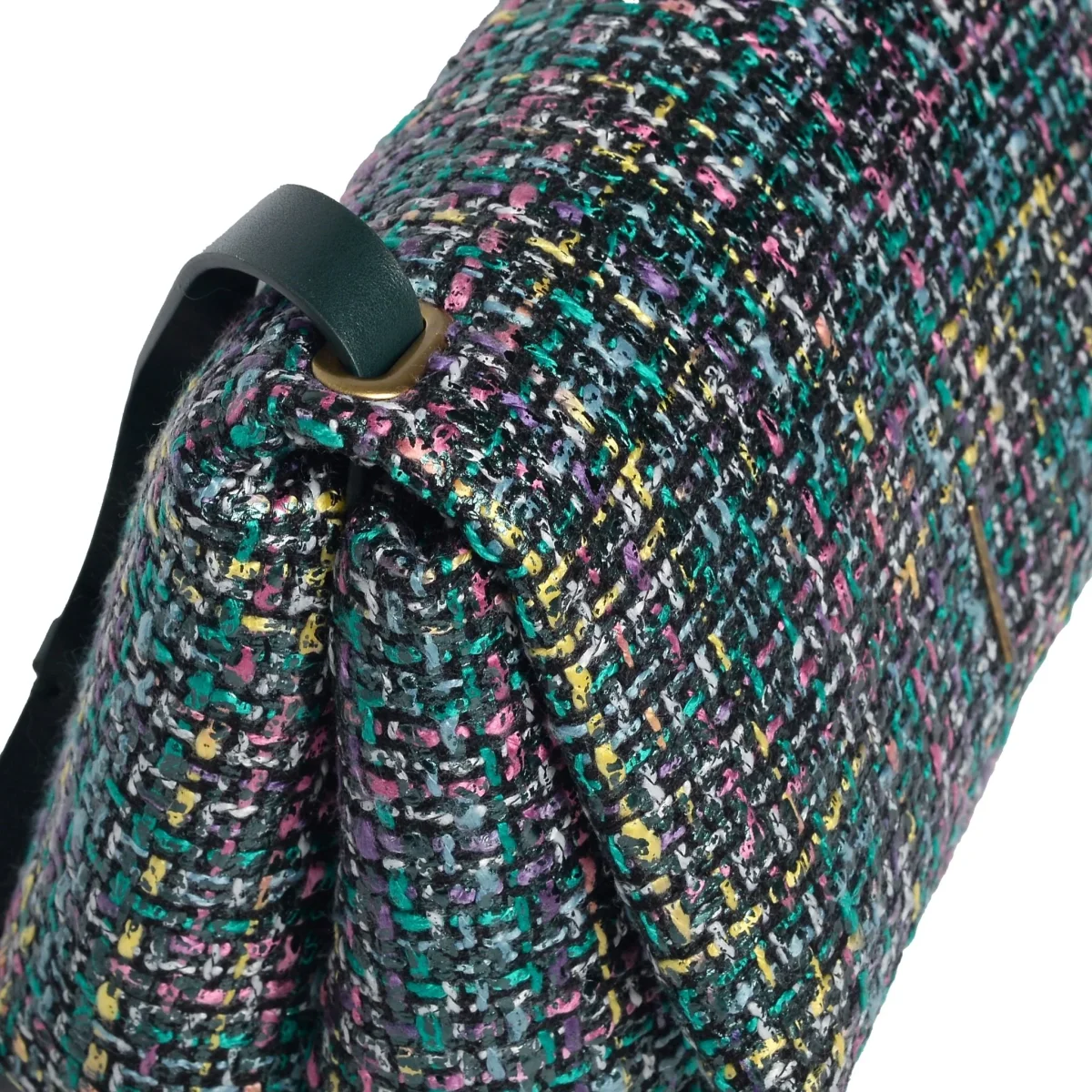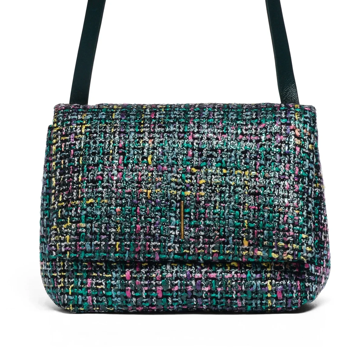 Borsa di medie dimensioni capiente e compatta. La morbidezza è accentuata da una leggera imbottitura. La patta si blocca con un magnete autocentrante. La tracolla è regolabile. Tasca interna e fodera in microfibra base profondità 13cm base larghezza 23/27cm Altezza 19cmtracolla 110/125 cm