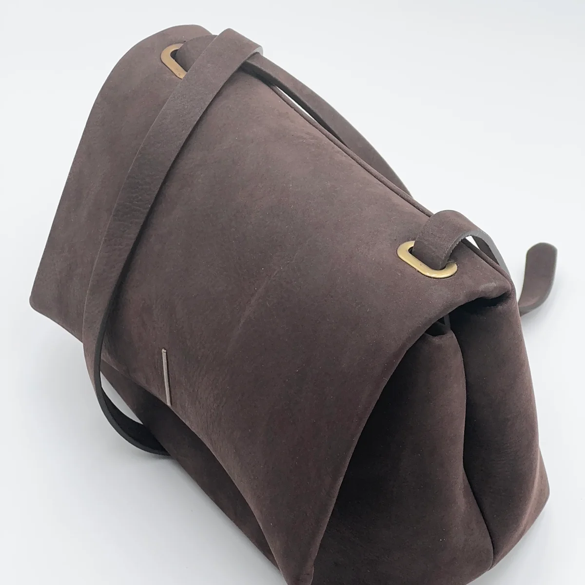 Borsa di medie dimensioni in pelle Long Beach color testa di moro, compatta ma capiente. Morbida e leggermente imbottita, con patta chiusa da magnete autocentrante.