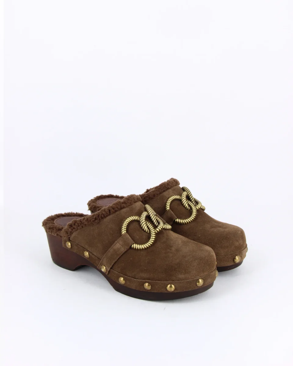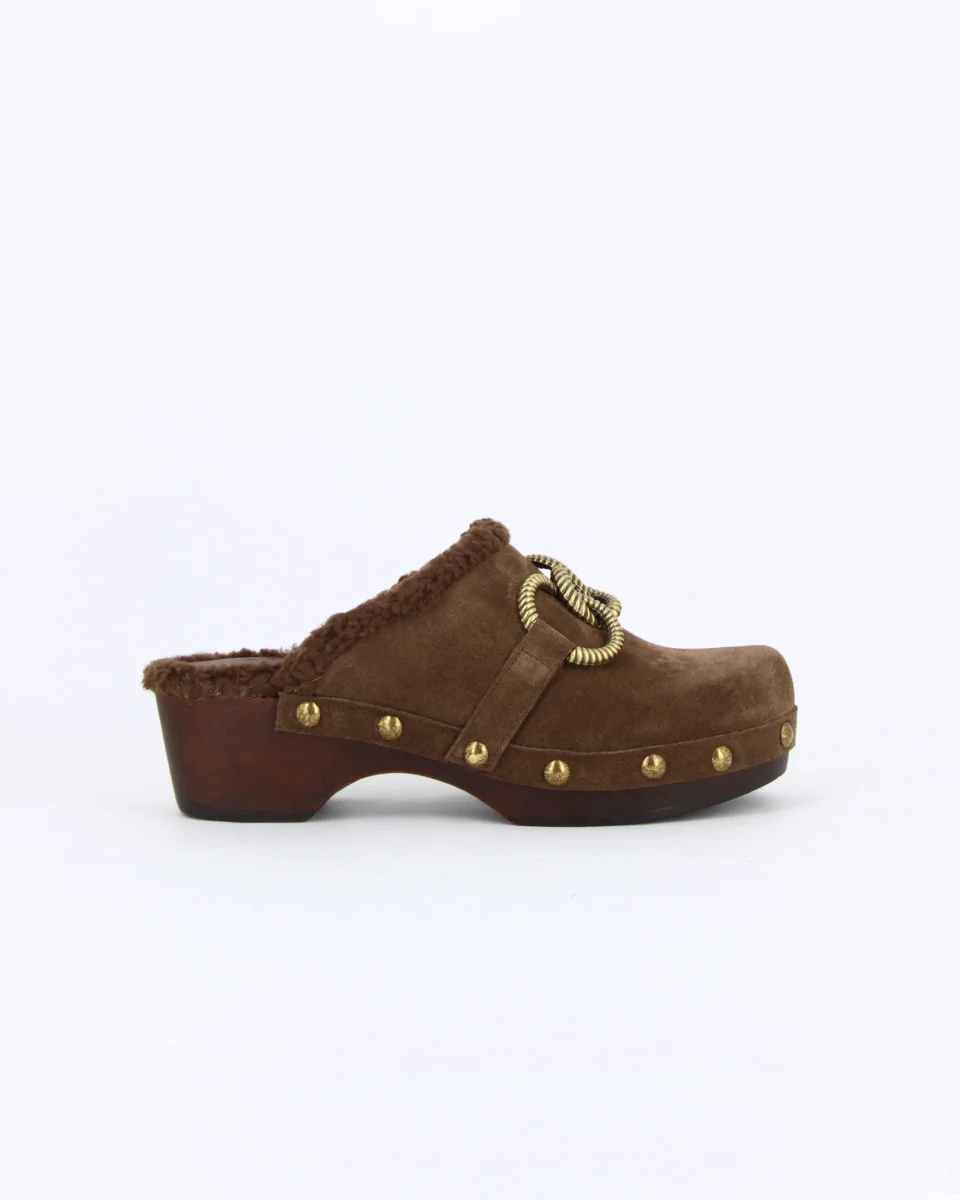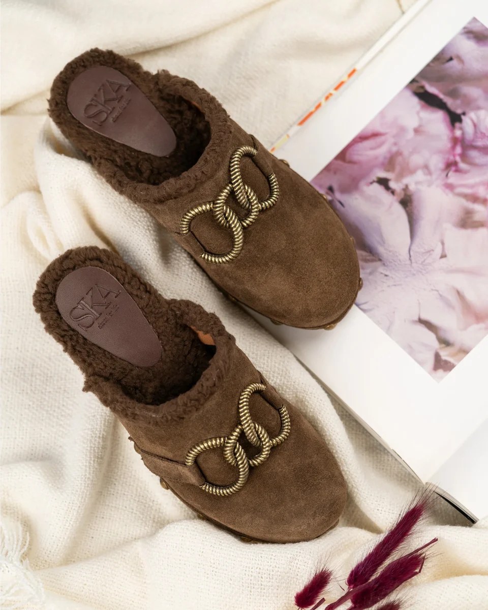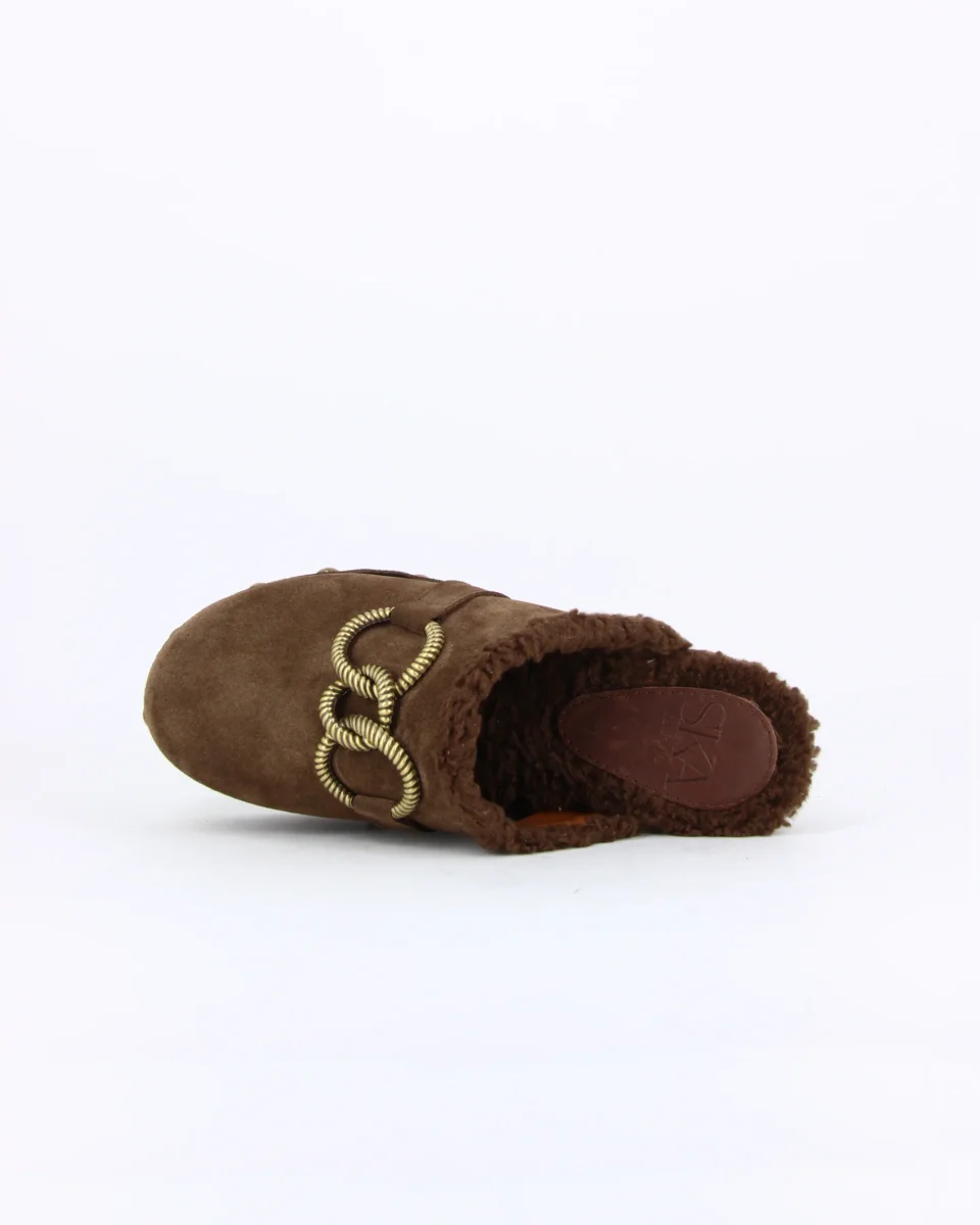 ZEBRA Zoccolo in camoscio con suola effetto legno e soletta imbottita.