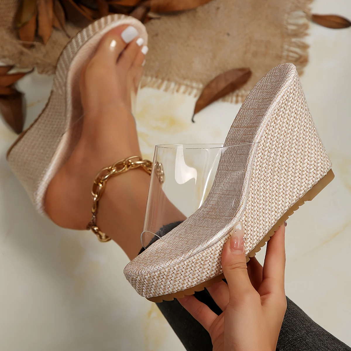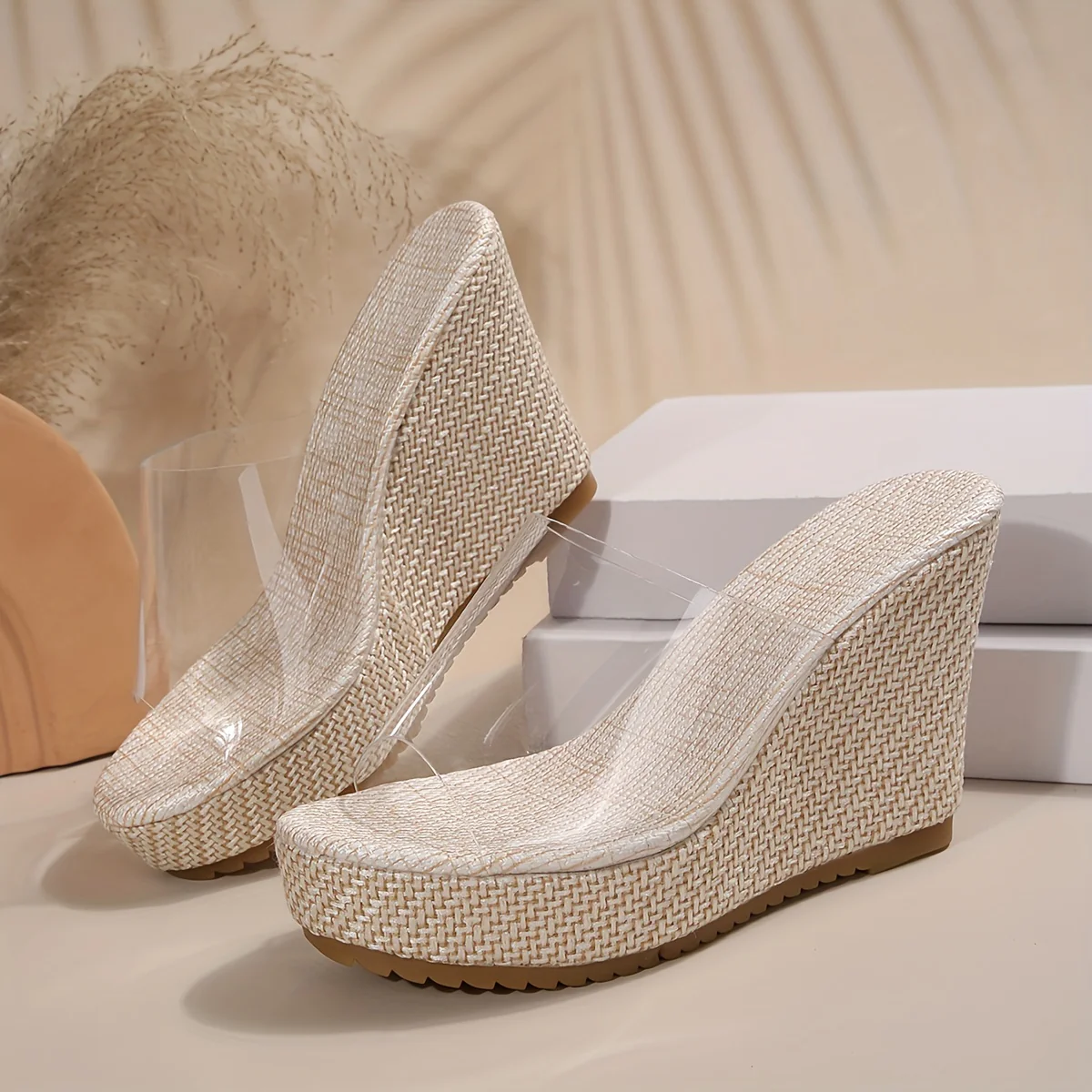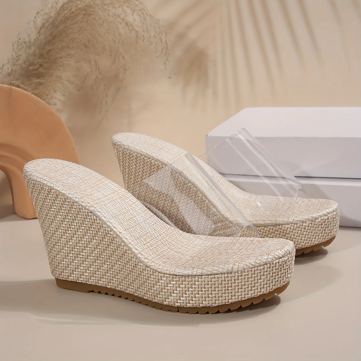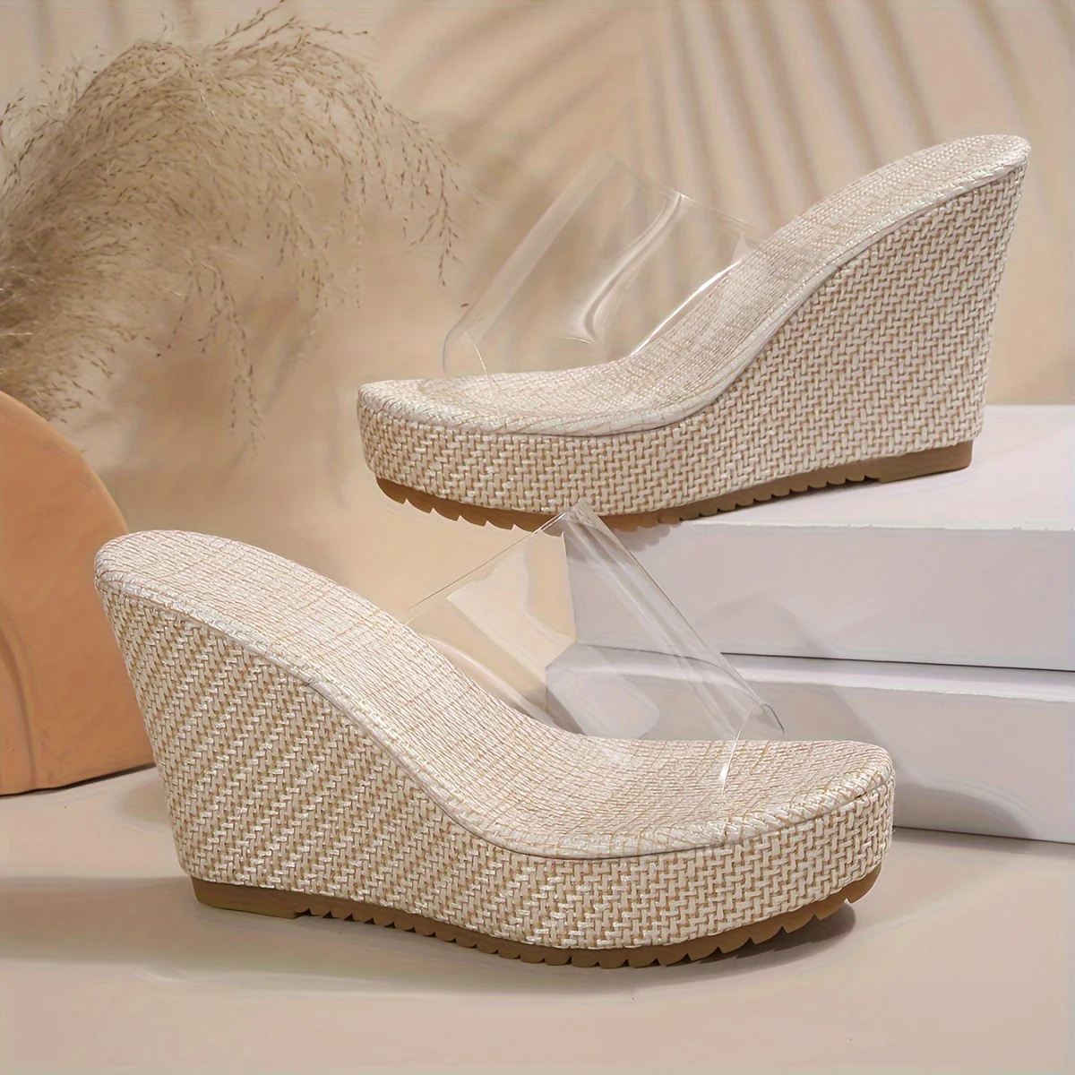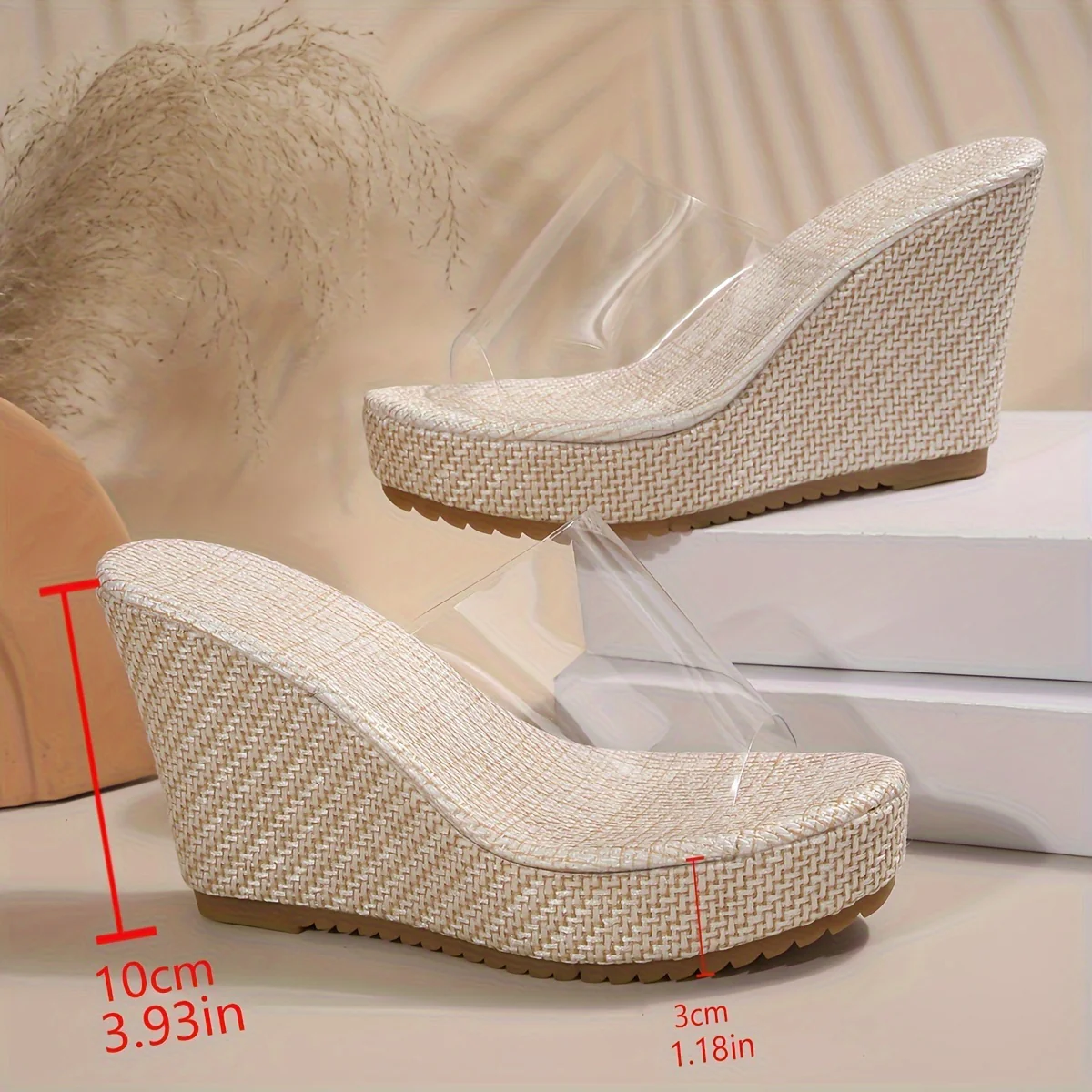Zeppe estive con punta aperta e cinturino alla caviglia, realizzate in TPU trasparente per un look moderno e leggero. La zeppa da 10 cm con suola spessa e plantare in EVA ammortizzato offre comfort e stabilità anche nelle giornate più calde. Perfette per il mare, le vacanze o outfit casual estivi con un tocco glamour.