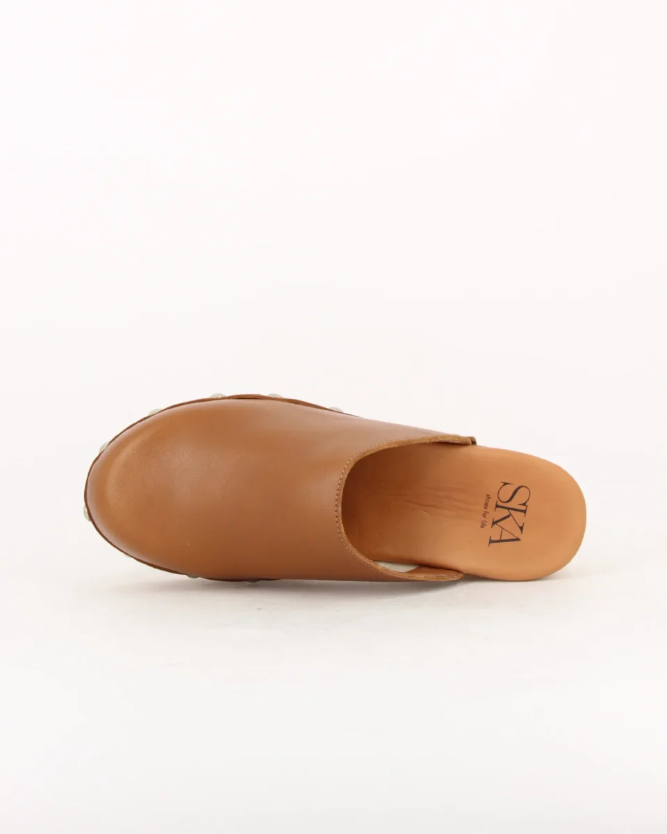 ZEUS Zoccolo in pelle scamosciata con suola effetto legno e soletta imbottita.