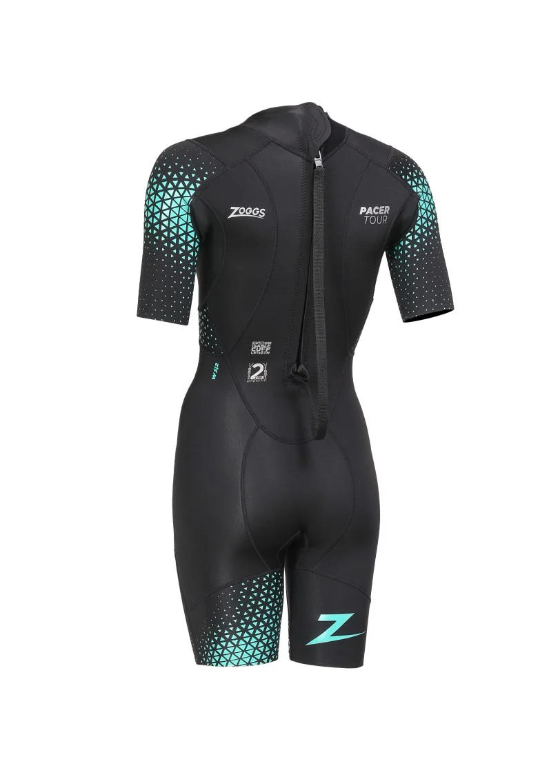 La muta Zoggs Pacer Tour shorty ha una base di neoprene rivestito di nylon da 2 mm che garantisce grande mobilità e assicura la libertà di movimento nella zona dei fianchi durante la corsa.